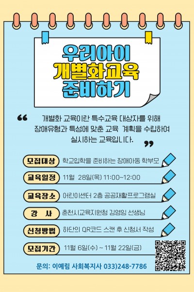 우리아이 개별화교육 준비하기 부모교육 참여 안내
