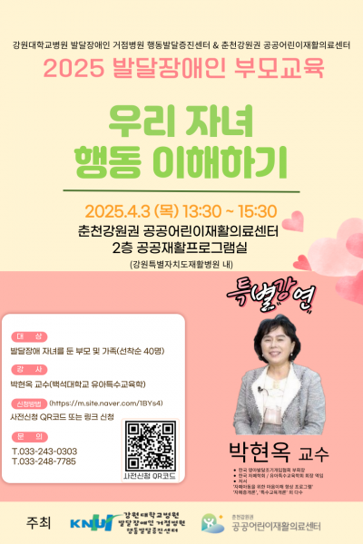 발달장애인 부모교육(우리 자녀 행동 이해하기) 참여 안내