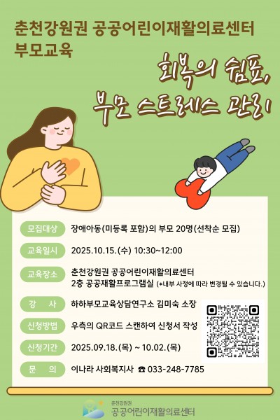 부모교육 '회복의 쉼표, 부모 스트레스 관리' 참여 신청 안내